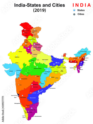 India New Map In 2020 With States And Cities Name India Map Vector Illustration Stock Vector Adobe Stock
